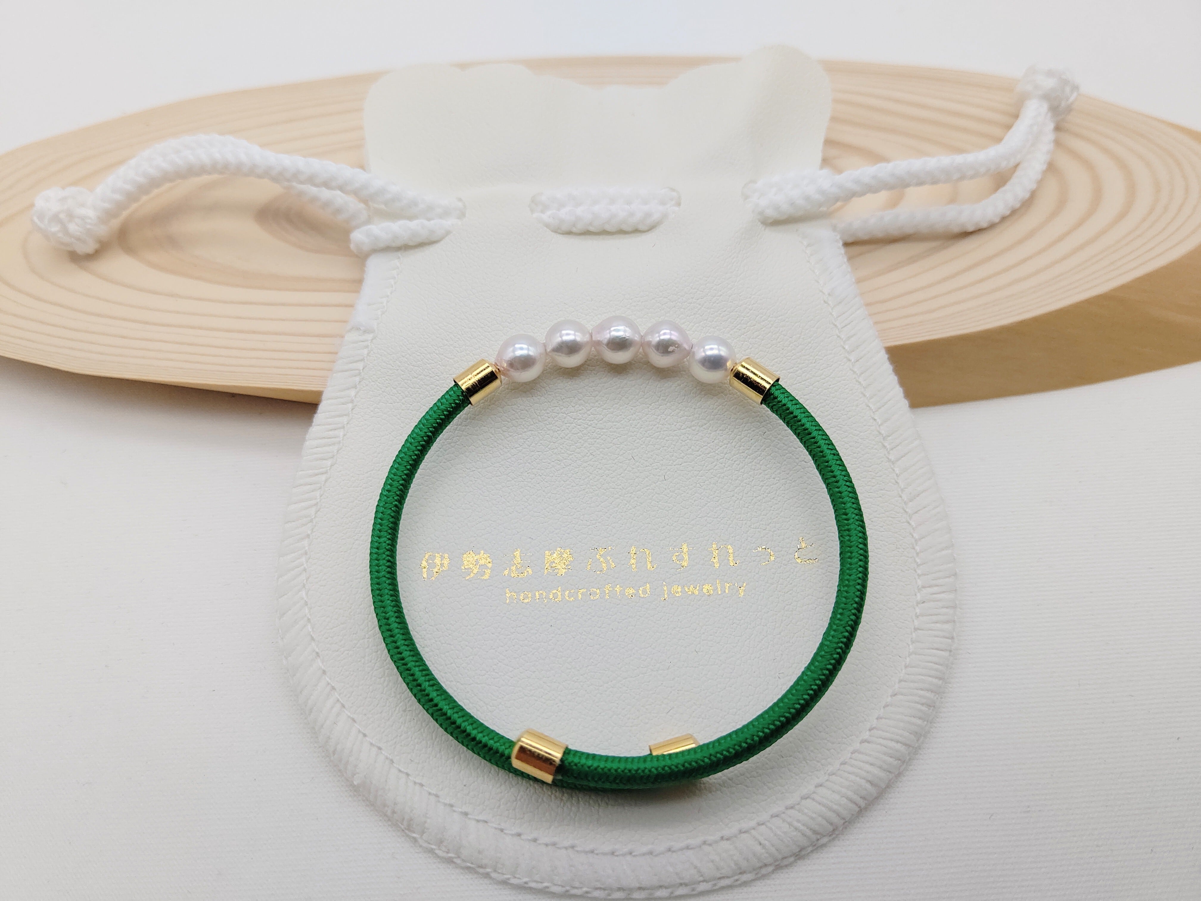 真珠と組み紐(シルク)で作られたオリジナルのブレスレット。